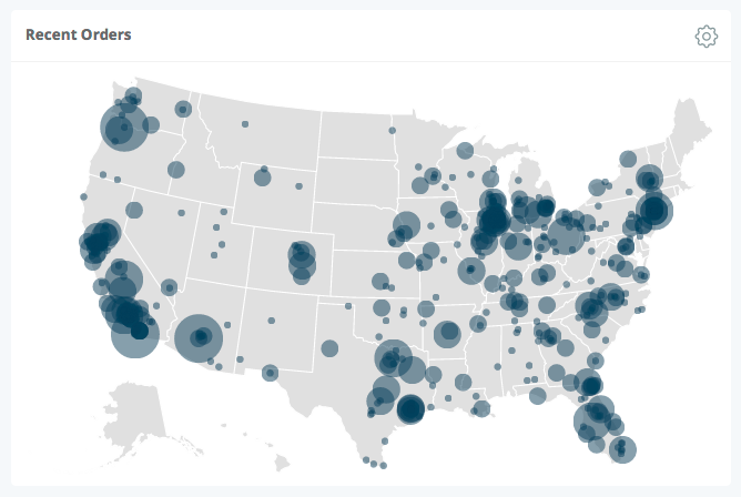Elements of type: looker_geo_coordinates are useful for plotting data that is represented by points. To plot regions, use looker_geo_choropleth. Coordinates maps plot a single measure and a single dimension of type: location or type: zipcode. Additional dimensions will show in the tooltip when you hold the pointer over the data point.