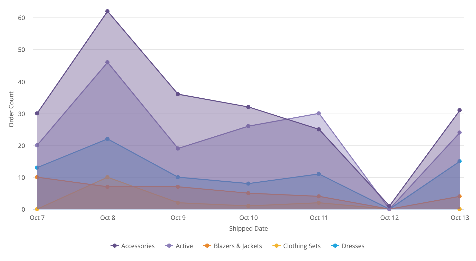 If multiple measures are specified, each measure becomes a y-axis series. If pivots are present, each pivot and measure combination becomes a y-axis series. If no measures are specified, two dimensions can be plotted.