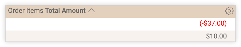 In your table, negative values for the Total Amount measure will be formatted as specified in the negative_format constant definition, with a red font and surrounded by parentheses.