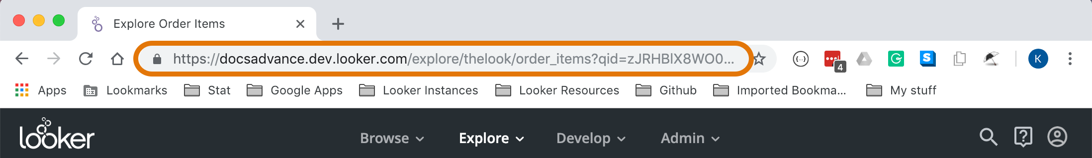 The Short URL contains the Explore slug. A slug is a randomly chosen short string that takes the place of the content ID value in a URL. For example, in this short URL, https://docserver.cloud.looker.com/x/79WcoBSRqh8YVglvYe6mHL, the string 79WcoBSRqh8YVglvYe6mHL is the slug.