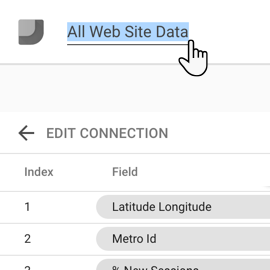 O Looker Studio atribui automaticamente à origem de dados o mesmo nome do conjunto de dados. Se quiser alterar o nome, clique no nome na parte superior esquerda e introduza um novo nome.