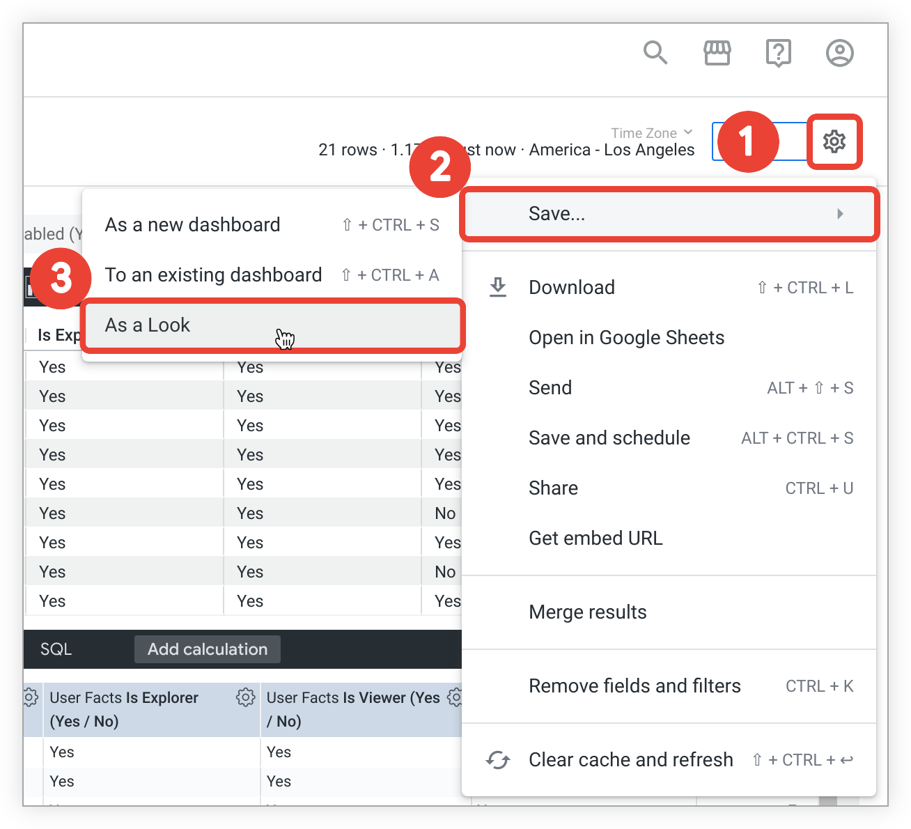 Follow these steps to save the Explore as a Look: