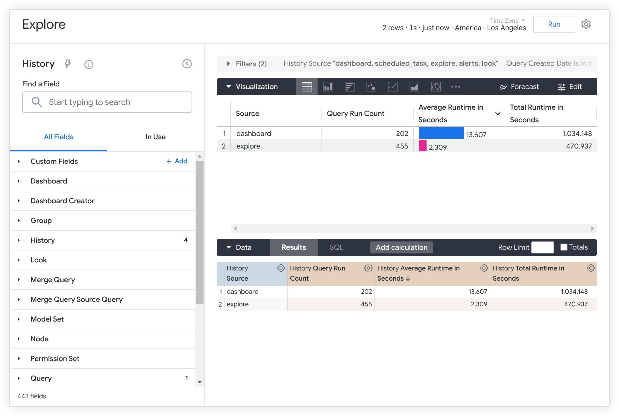 Following are some examples of how you can use some of the Explores in System Activity, along with the answers to some common questions. You can access the example Explores in this section by replacing <instance_name.looker.com> in the example URLs with the address of your Looker instance.