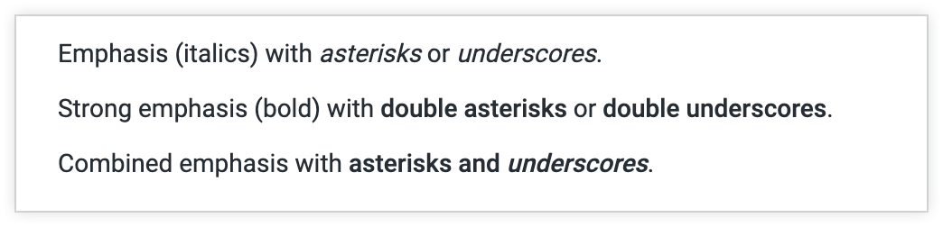 Strong emphasis (bold) with **double asterisks** or __double underscores__.