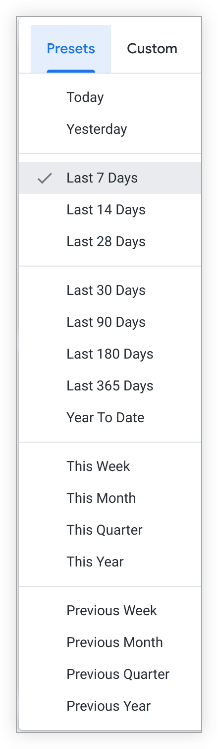 如需更改其时间范围,请点击相应过滤条件,以显示预设范围选项的下拉菜单。
