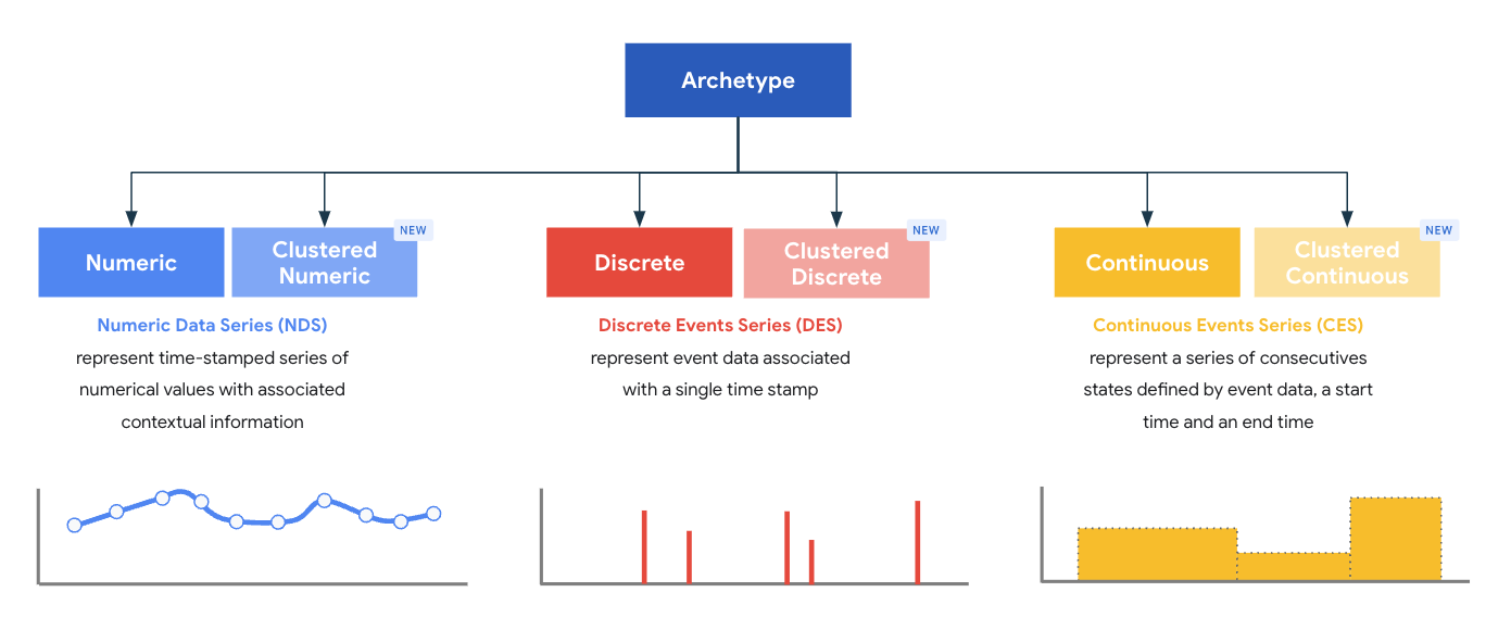 The numeric archetype family is designed to serve as the base for types that model a series of time-stamped numerical messages, for example, a temperature sensor emitting a stream of readings.