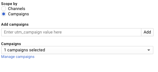 Enter the utm_campaign values used in your URLs — just the utm_campaign