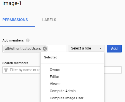 allAuthenticatedUsers, and from the Select a role menu, select Compute Image User.