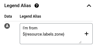 Por ejemplo, en la siguiente captura de pantalla se muestra una plantilla de leyenda que contiene texto sin formato y la expresión ${resource.labels.zone}:
