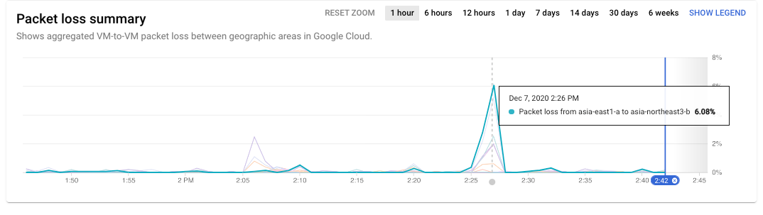 puncak kerugian terjadi antara asia-east1-a dan asia-northeast3-b pada pukul 14.26.