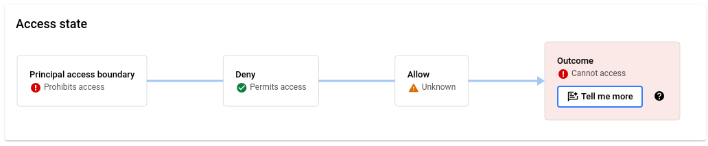 If you don't have permission to view the principal access boundary policies that apply to a principal, the access results for principal access boundary policies are Unknown.