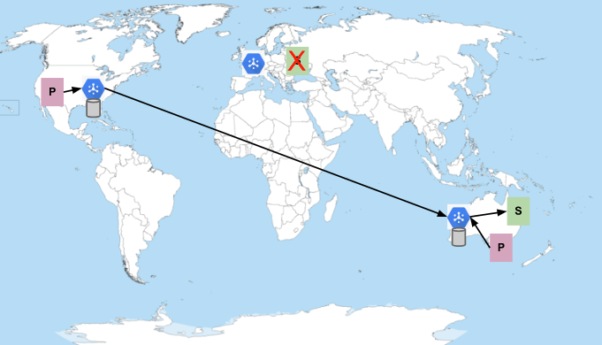 한 리전의 게시자를 사용할 수 없게 되더라도 이미 게시된 메시지가 가장 가까운 구독자에게 계속 전송됩니다.