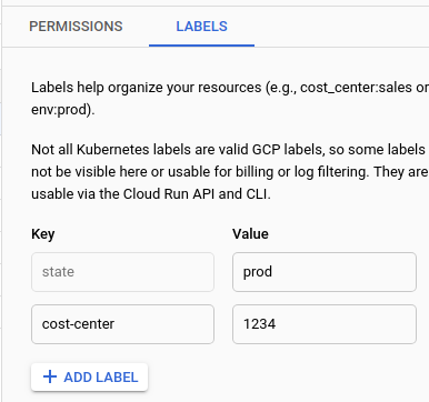 gcloud run deploy SERVICE --image IMAGE --labels KEY=VALUE