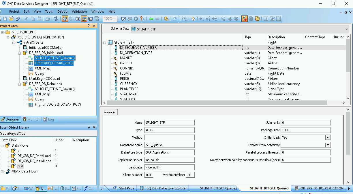 - Creating the data flow between SAP Data Services and BigQuery