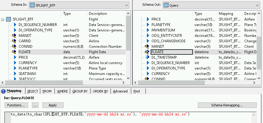 - Select the Mapping tab below the schema lists.