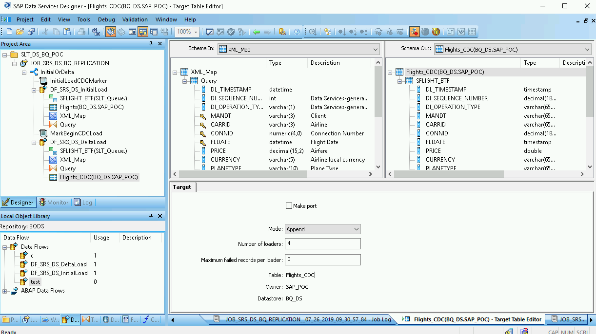 - Creating the data flow between SAP Data Services and BigQuery