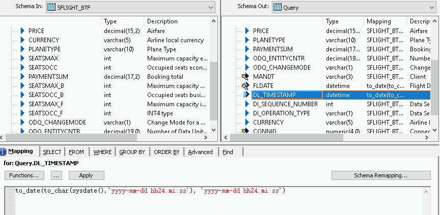 - Select the Mapping tab below the schema lists.