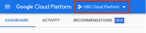 Cari menu drop-down project Google Cloud Platform di dasbor Anda: