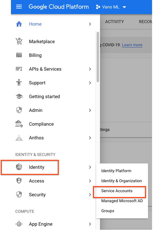 Pertama, pastikan Anda telah mengaktifkan izin IAM "Cloud Talent Solution Project Editor" di project Anda. Anda dapat melakukannya dengan membuka Identity > Service Accounts di konsol GCP: