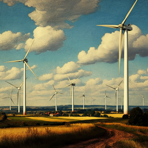 "genera una imagen con el estilo de [art period or movement]: un parque eólico"
